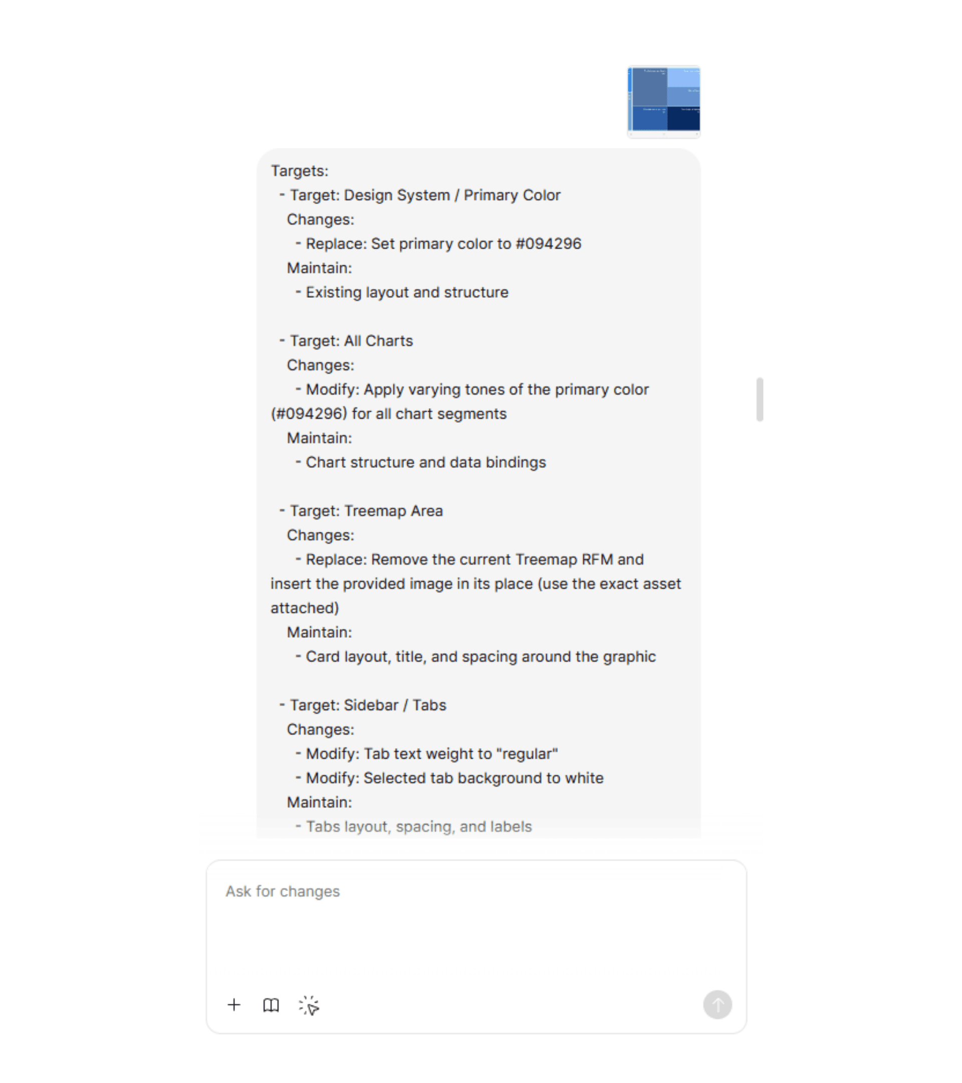 Produtos orientados a dados exigem cuidado: Dashboards, tabelas e gráficos ainda são desafiadores de construir via prompt. Ajustes finos de design nesses elementos, em alguns casos, são mais rápidos e precisos quando feitos manualmente.